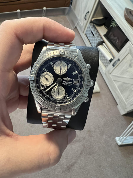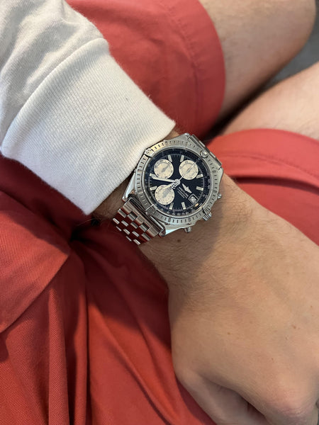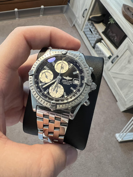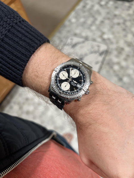 The Breitling Chronomat A13352 is a quintessential model from the Chronomat collection, renowned for its robust construction, versatile design, and reliable chronograph functionality. This timepiece blends sporty appeal with a touch of sophistication, making it a favorite among watch enthusiasts.
