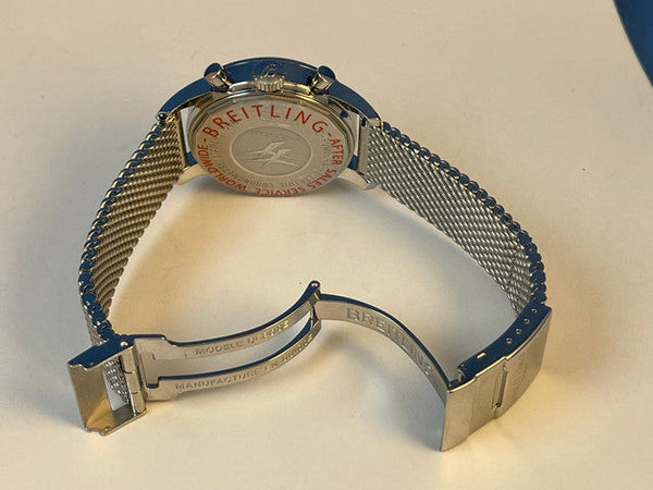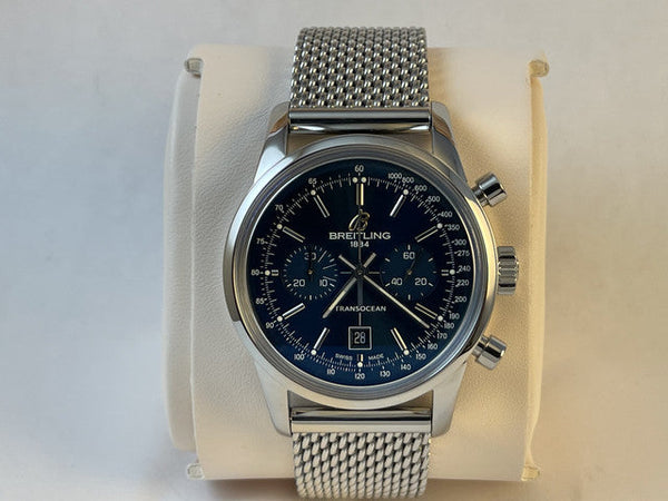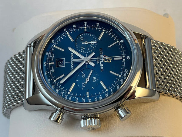 This Breitling Transocean Chronograph 38 is in excellent pre-owned condition, showing minimal signs of wear. The watch has been professionally serviced and polished, ensuring it looks and performs like new.
