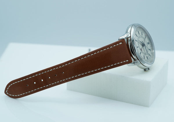 This Patek Philippe Calatrava 5212A is in excellent condition, with the stainless steel case and silvery dial impeccably maintained. The movement has been fully serviced and is performing flawlessly, ensuring reliable functionality for years to come.